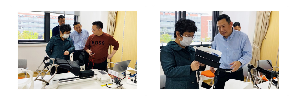 上海市民政局副局长梅哲参观团队研发的云康复智能化CPM和3D打印脊柱侧弯矫形器、3D打印膝关节矫形器、3D打印颈椎枕和3D打印矫形鞋垫等数字化康复辅具产品。梅局长对会议进行总结发言,建议3D打印定制式增材制造膝关节矫形器申请后续的社区租赁目录,推动更好进行高校科研产品的临床转化,并对其他数字化康复辅具产品的合作和推广提出可操作性的良好路径。通过产学研医管用联动,推动上海建设长三角康复辅具产业转化中心,促进上海成为创新型康复辅具产业发展全国布局的中心城市。